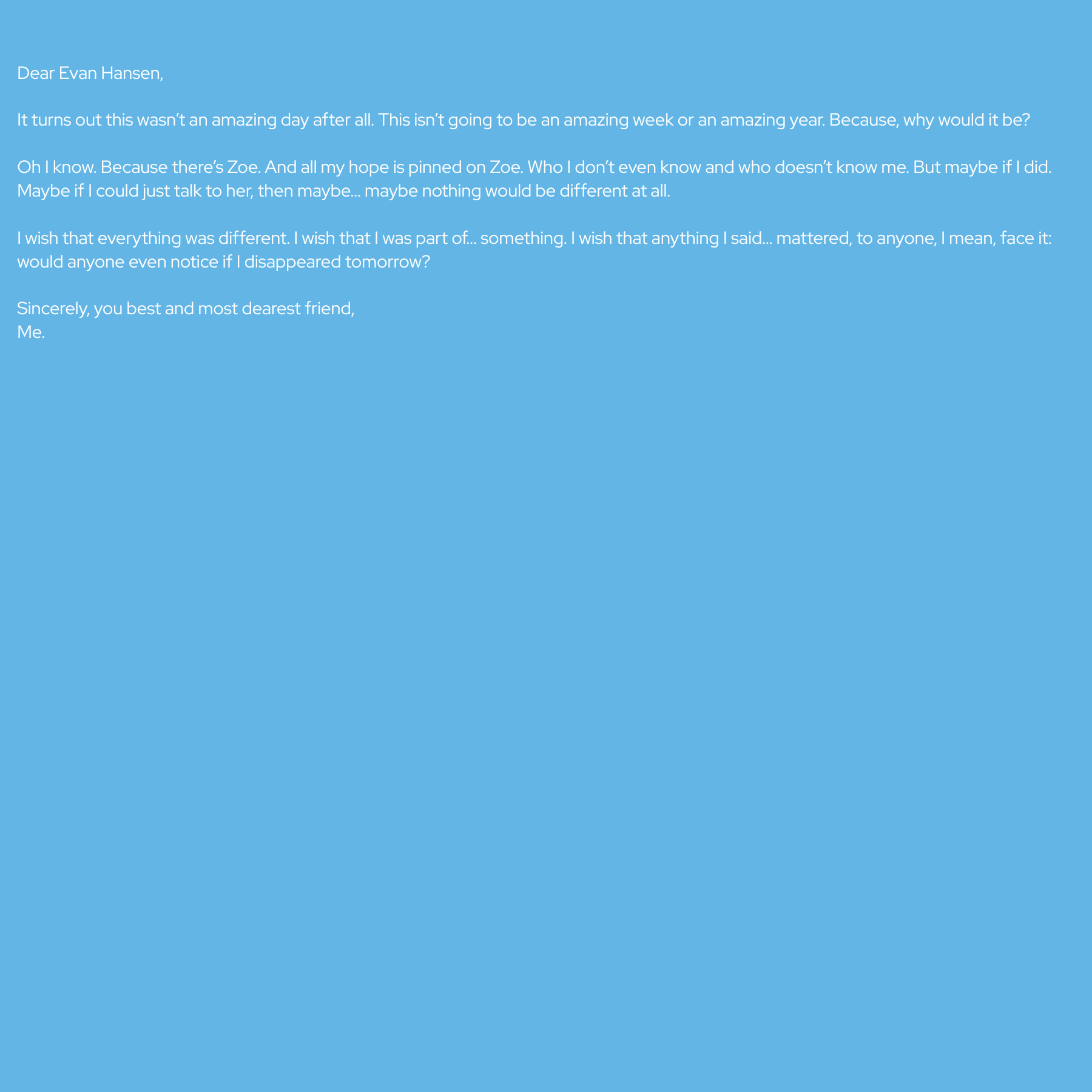 I know someone who really needed to hear this today, so, thank you Evan Hansen for doing what you’re doing!
